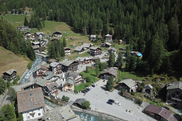 “Come recita il toponimo ufficiale, si tratta, secondo la tradizione, di un antico insediamento walser, documentato spesso come Canton des Allemands, ‘Cantone dei Tedeschi’. ... con la frazione Les Fusines forma quasi un unico agglomerato, e comprende diversi villaggi satelliti. ... L’insieme di questi abitati contava quattro mulini ... e cinque forni ... . Vi era una scuola fondata nel 1768 ... . La prima cappella di Saint-Jacques è antichissima ... all’imbocco di una via di comunicazione molto trafficata che portava al colle delle Cime Bianche, quindi a quello del Teodulo, per arrivare in Svizzera.”Da: Saverio Favre, Ayas, Antropologia di un territorio. Luoghi, leggende, storie, fatti, Collana Paradigma, Priuli&Verlucca 2020